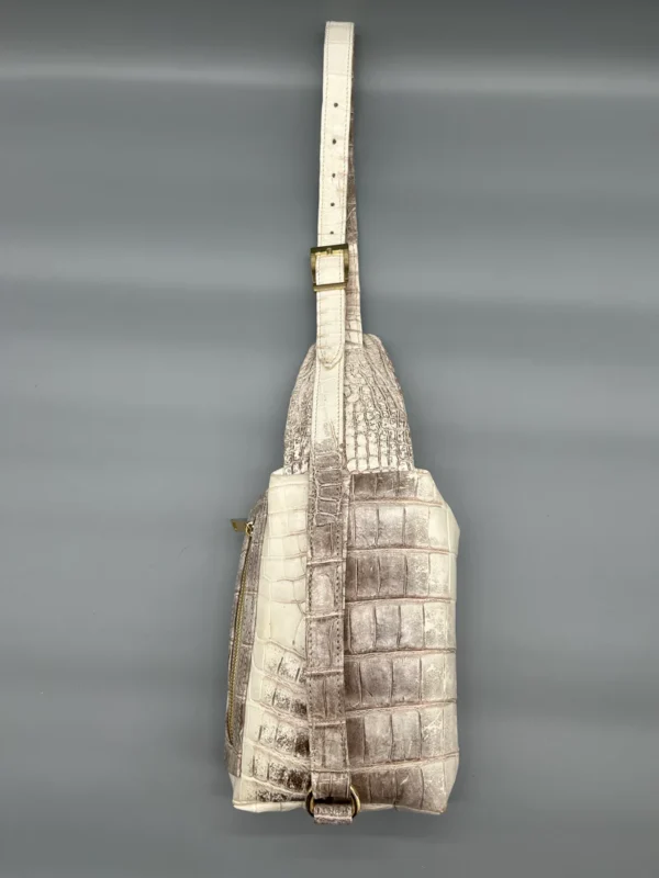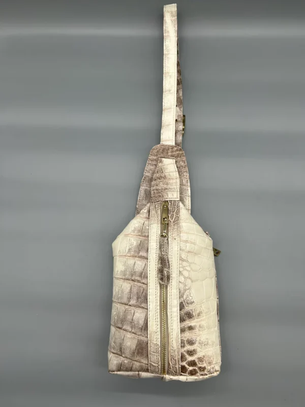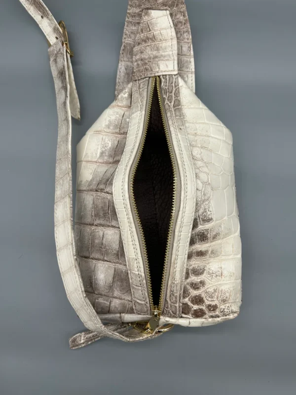 Borsa mono spalla a tracolla in pelle di coccodrillo fatta a mano di dimensioni 25x20x4cm bianco e grigio