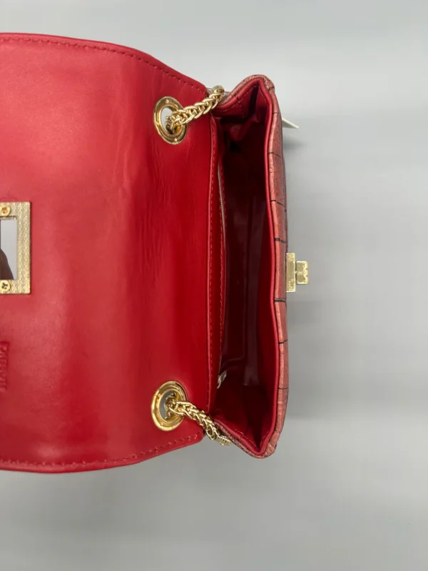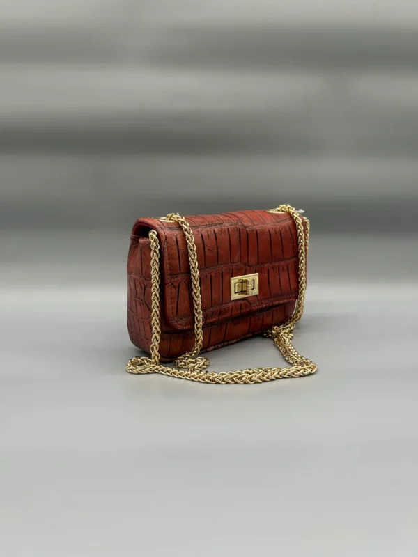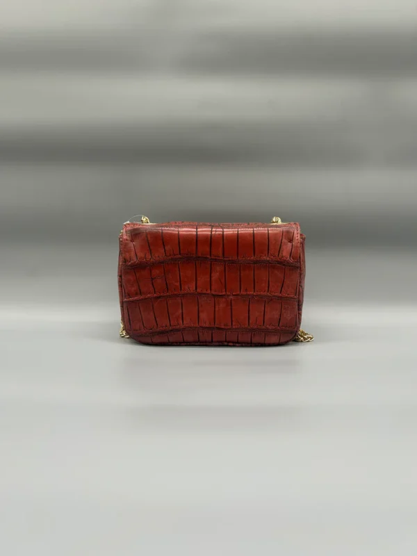 Borsa con catena tubolare piccola in pelle di coccodrillo fatta a mano di dimensioni 20x13x6cm rosso