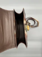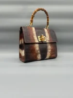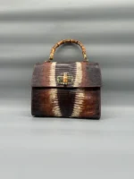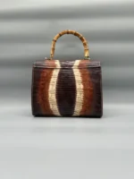 Borsa stondata in pelle di lucertola con un manico in bambù fatta a mano di dimensioni 25x20x10cm marrone bianco e marrone scuro