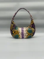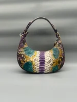 Borsa a mezzaluna in pelle di pitone fatta a mano di dimensioni 25x12x7cm