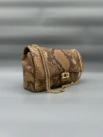 Borsa con catena tubolare grande in pelle di pitone fatta a mano di dimensioni 27x16x8cm