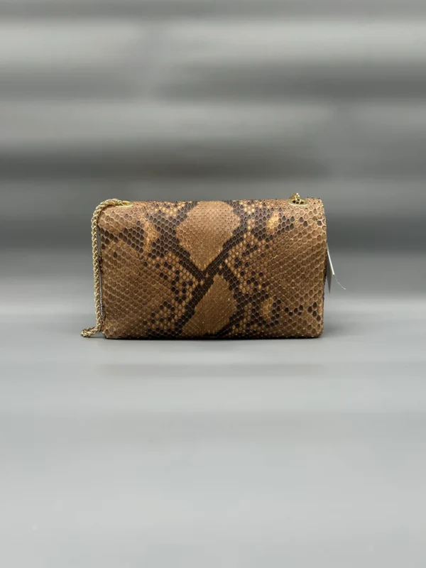 Borsa con catena tubolare grande in pelle di pitone fatta a mano di dimensioni 27x16x8cm